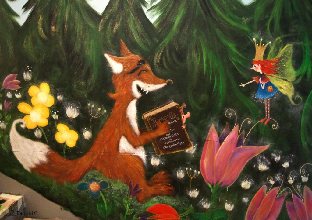 Kun lohikäärmeet nukkuvat, keijut karkeloivat ja taikapöly pöllyää- Petronella Grahnin seinämaalaukset.