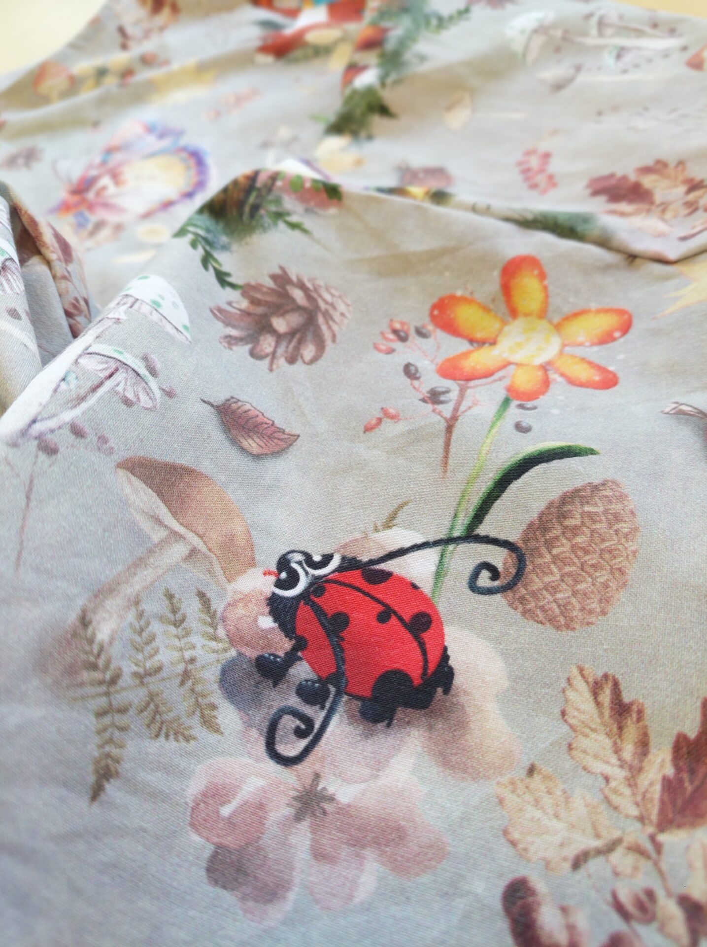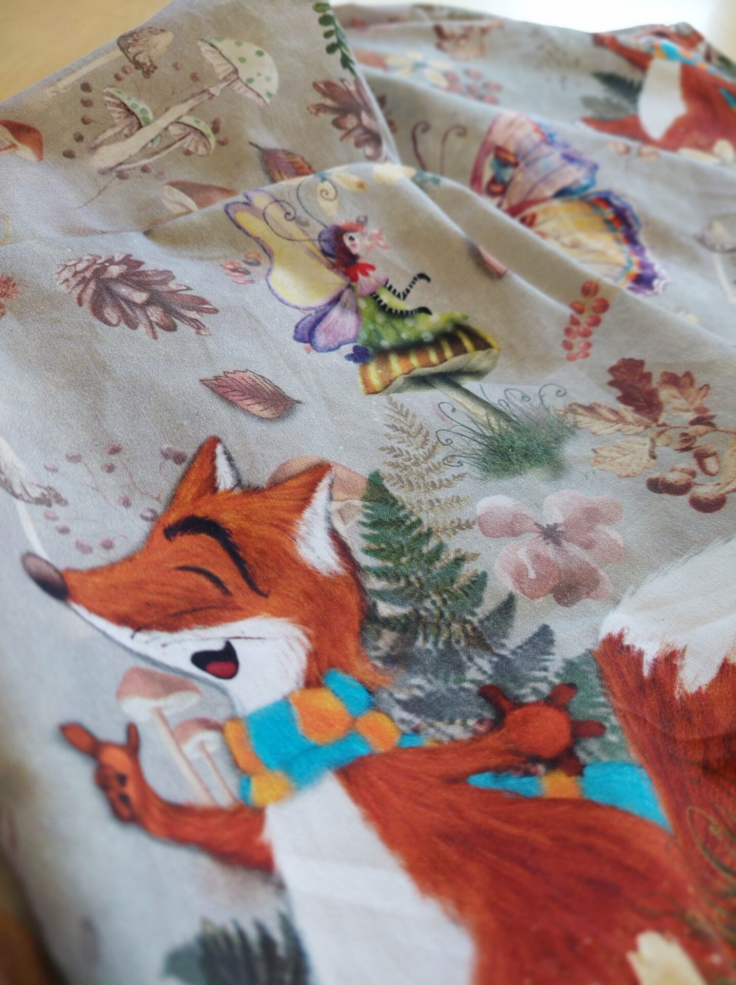 Kun suunnittelin vauvalahjan kuosin, ajattelin satujen satumetsiä, mielikuvitusta, pieniä seikkailuja ja sitä tunnetta, kun maailma on vielä täynnä ihmeitä.