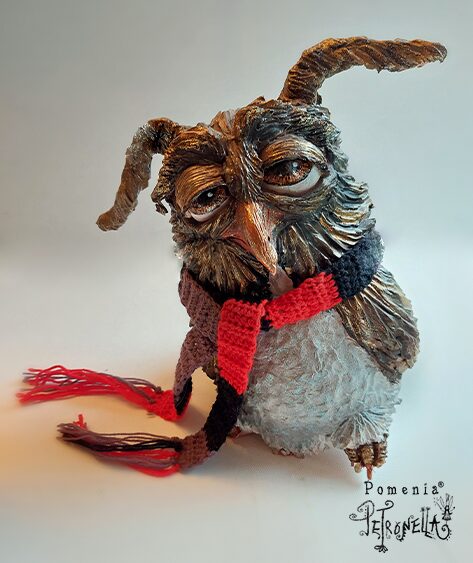 “Mr. Owl”– hand-sculpted clay figure, completed 05/2023