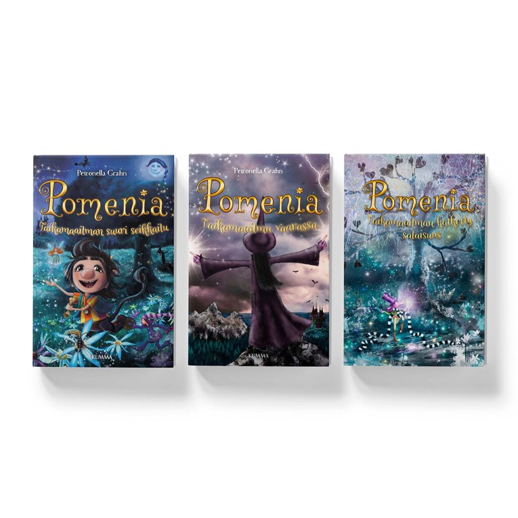 Pomenia-kirjatrilogian ensimmäinen osa Pomenia – Taikamaailman suuri seikkailu nuoremmille lapsille suunnattu kuvakirja Taikapölyn salaisuus aloittivat laajan Pomenia-tuotesarjan Suomessa syksyllä 2020. (kummakustannus.fi).